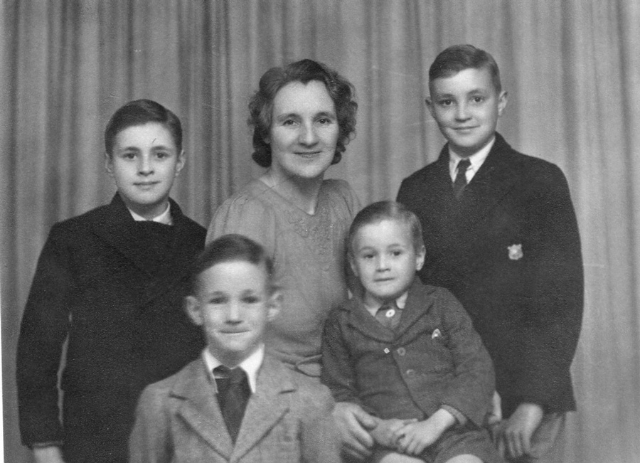 From left to Right - Richard, Peter, Mother Winifred, Brian and Bob (1945)
